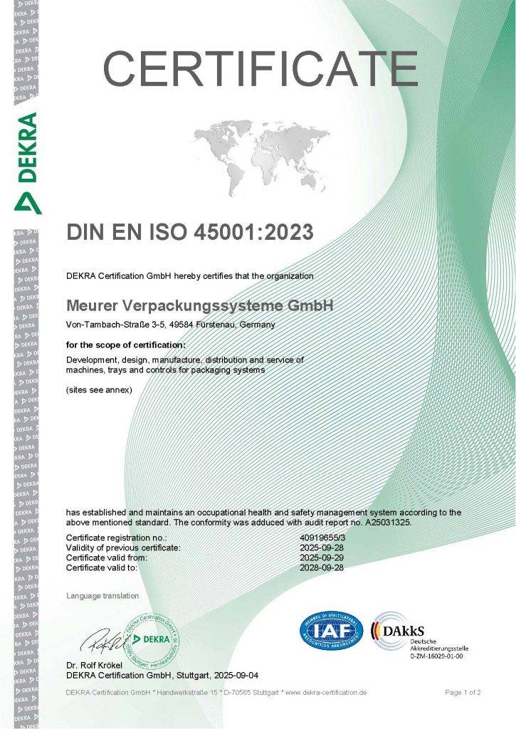 La gestion durable reste au cœur de notre gestion d’entreprise, qui vise à garantir notre existence sur le long terme. Nous travaillons constamment au développement de nos processus d’entreprise afin d’optimiser l’utilisation des ressources et de notre force de travail. En tant que constructeur de machines d’emballage de fin de ligne, notre objectif est de produire pour nos clients des machines sûres, de haute qualité et compétitives qui garantissent une utilisation durable et offrent un cycle de vie étendu grâce à des transformations ou des modifications au niveau modulaire. Nous soulignons cette promesse en offrant la possibilité de prolonger la garantie.